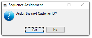 Click No to assign the customer ID manually, and the control returns to the Customer ID field.