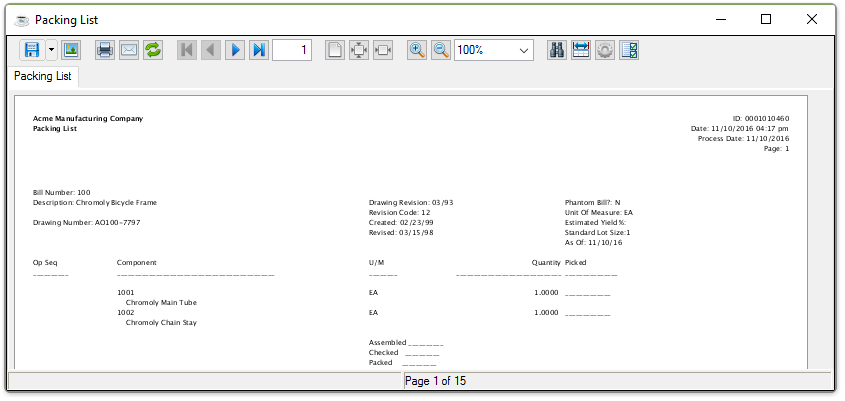 A listing of materials, operations, and subcontracts used to describe the manufacture of an item. Packing List is used to help with assembly