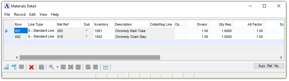 Select Standard Line or Memo from the dropdown. Using the Memo selection enables the Cmts/Msg Line field for entry of a message regarding the material.