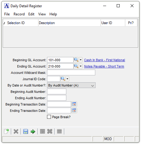 General Ledger - Daily Detail Register