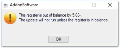 This register is out of balance. The update will not run unless the register is in balance.