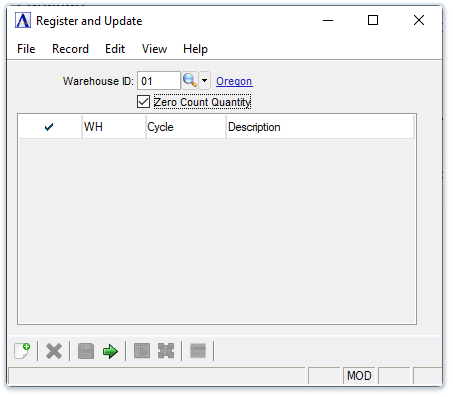 Select Physical Count Register from the Physical Inventory menu.