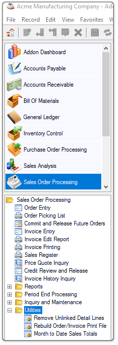 Select Sales Order Processing from the AddonSoftware menu.