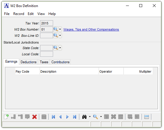 Select W-2 Processing from the Periodic Processing menu, then select W2 Box Definition.