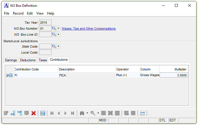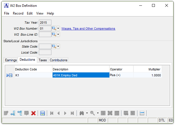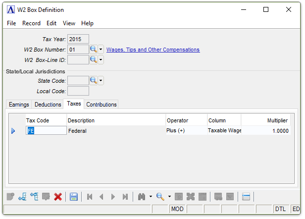 Click Cancel to return the W2 Box Definition Code you are Editing.