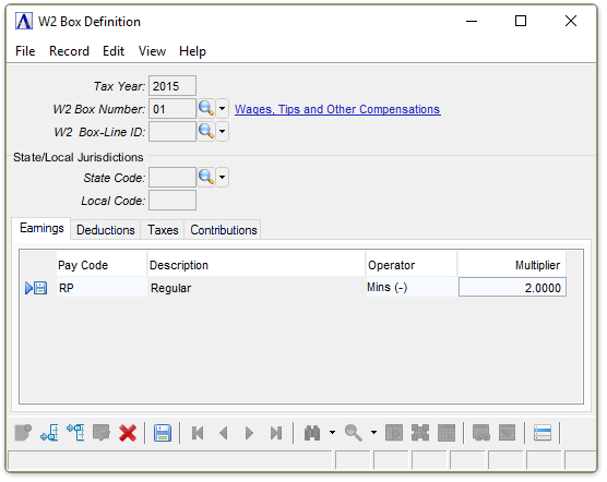 Enter the number or letter of the box line on the W-2 form. A description of the pay code appears in the next column