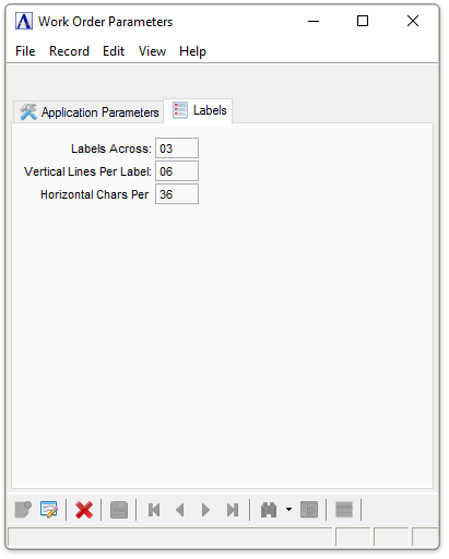 Work Order Parameters - Labels tab