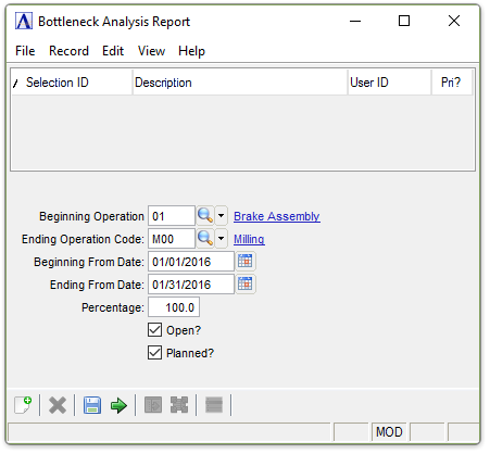 Enter the minimum percent of utilization to report.Any operation that is scheduled beyond this utilization will be considered a bottleneck.