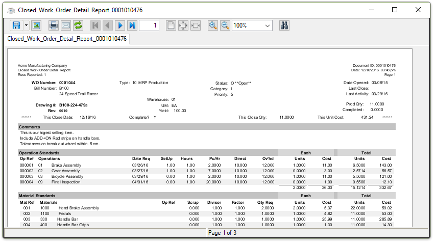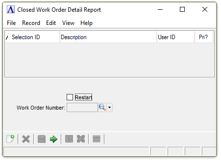 Select Closed Work Order Detail Report from the Transaction Processing menu.