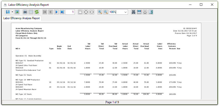 Select Labor Efficiency Analysis Report from the Reports menu.