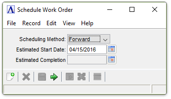 If Backward is selected in the Scheduling Method field, the system will bypass this field. The Estimated Start Date will be determined after entering the date in the Estimated Completion Date field.
