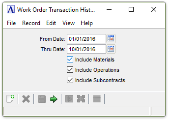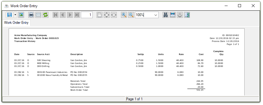 When all transactions have been displayed, the current total accumulated cost in the work order is shown. The totals shown represent all transactions that have been made against the work order. The totals are not affected by the selection criteria for the display.