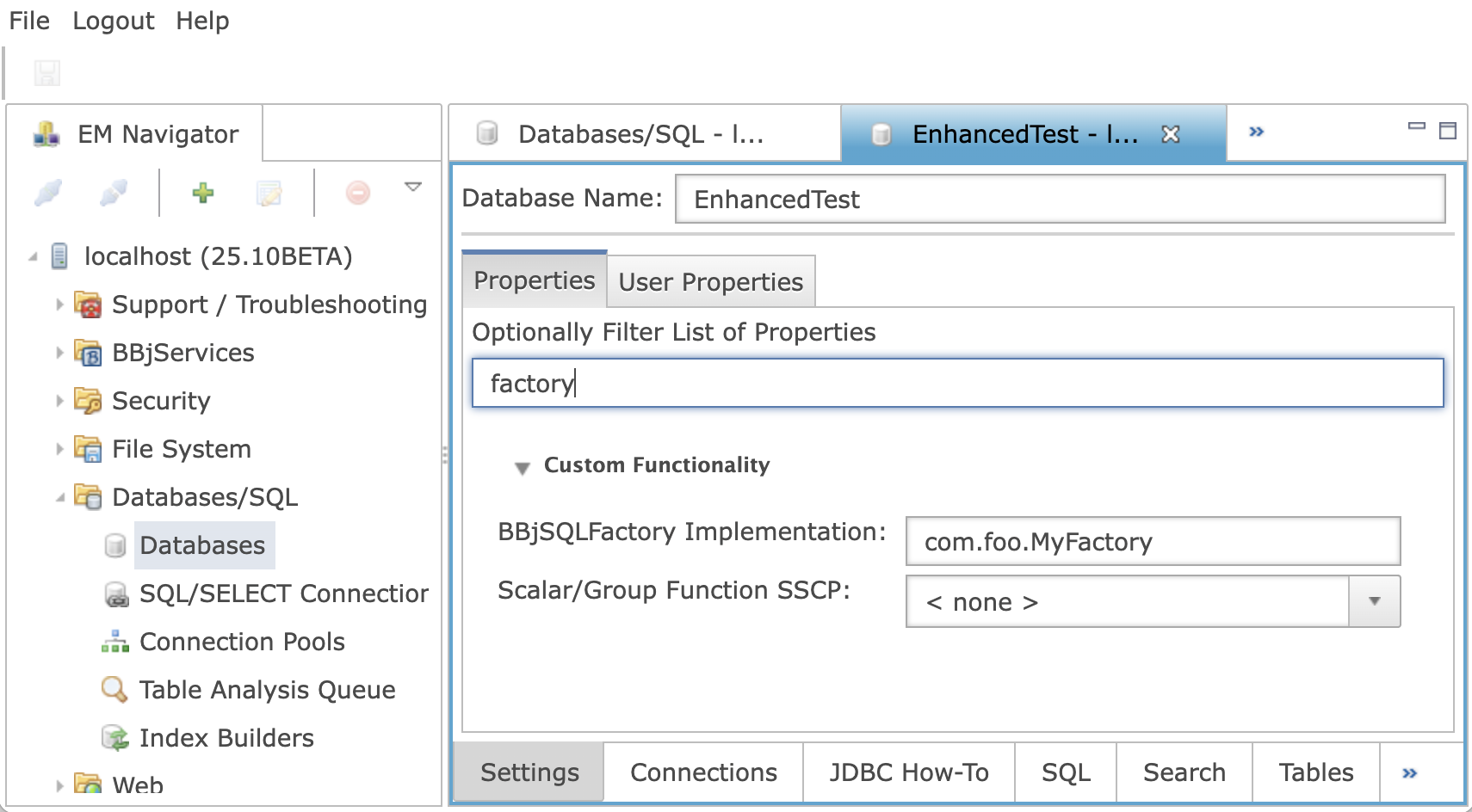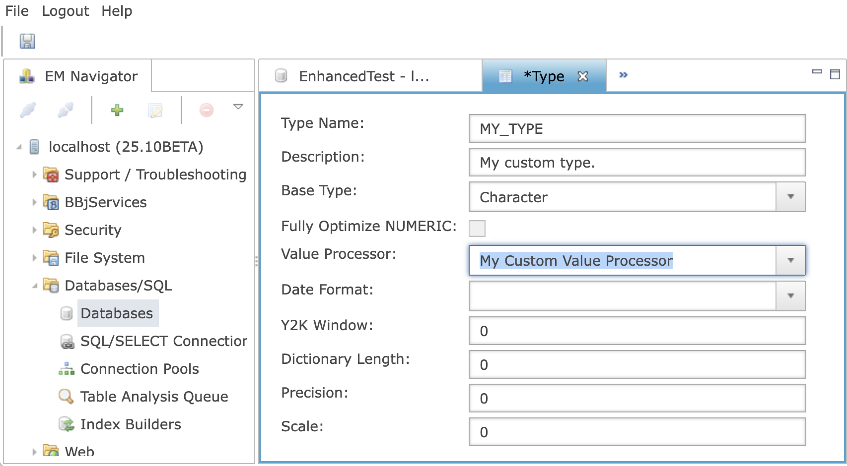 Next, configure your database to use the ValueProcessorBBjSQLFactory: