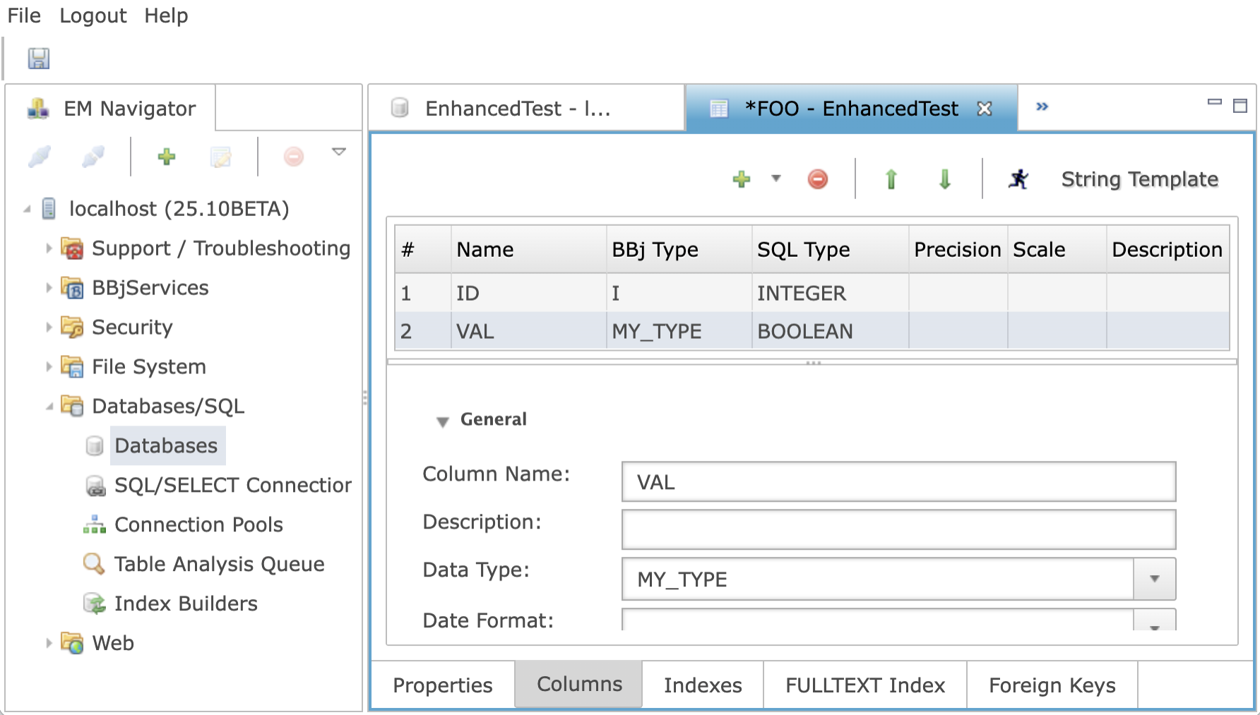 The BBj SQL engine offers a powerful gateway to your keyed data files, allowing you to access and manipulate the data in MKEYED, XKEYED, and VKEYED files using familiar SQL queries. Traditionally, the record data within these files is stored in a raw byte array format. While BASIS's SQL engine interprets this data based on string templates, these templates are inherently limited to supporting only string and numeric types. This limitation can pose a challenge when your data logically represents more complex SQL data types like BOOLEAN, DATE, or other types.