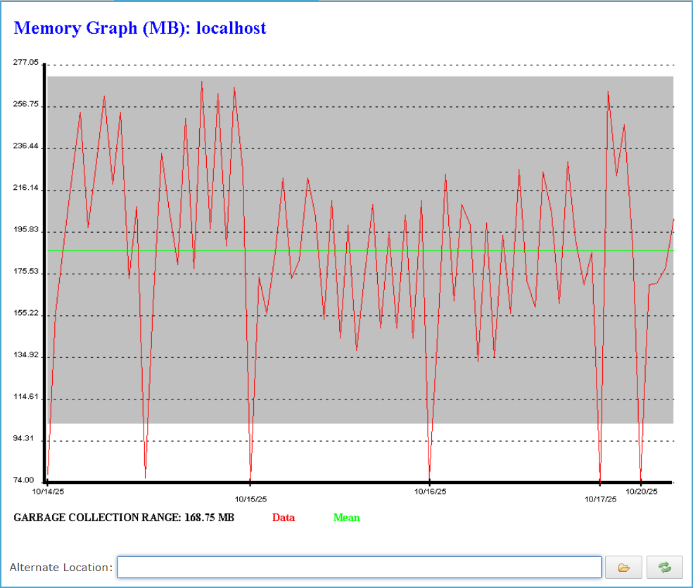 Mean | Calculated average of all recorded memory readings, providing users with a consistent baseline for analyzing BBjServices performance trends. |