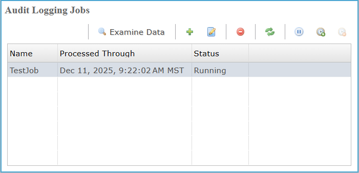 Audit Logging Jobs by presenting each job’s name, processed-through timestamp, and current status, providing a clear operational view for monitoring ongoing audit data collection activities.