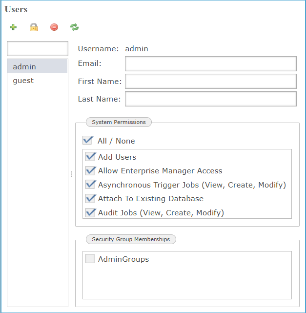 When unchecked, the user cannot access the Enterprise Manager interface or perform any associated administrative tasks.