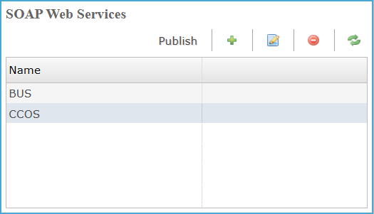 Lists all configured SOAP web services and provides controls to manage, publish, and modify them.